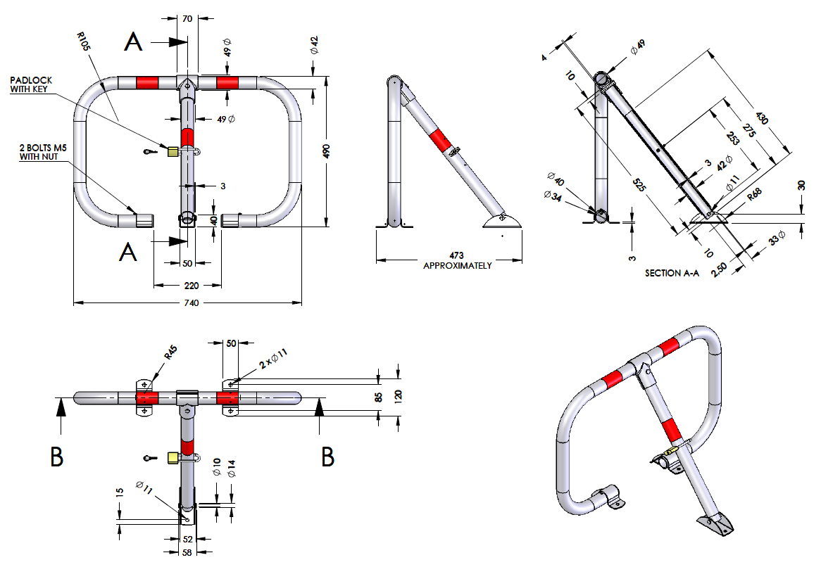 - Umklappbare Bügel werden vor allem zum Sperren von Zufahrten und Parkplätzen eingesetzt.